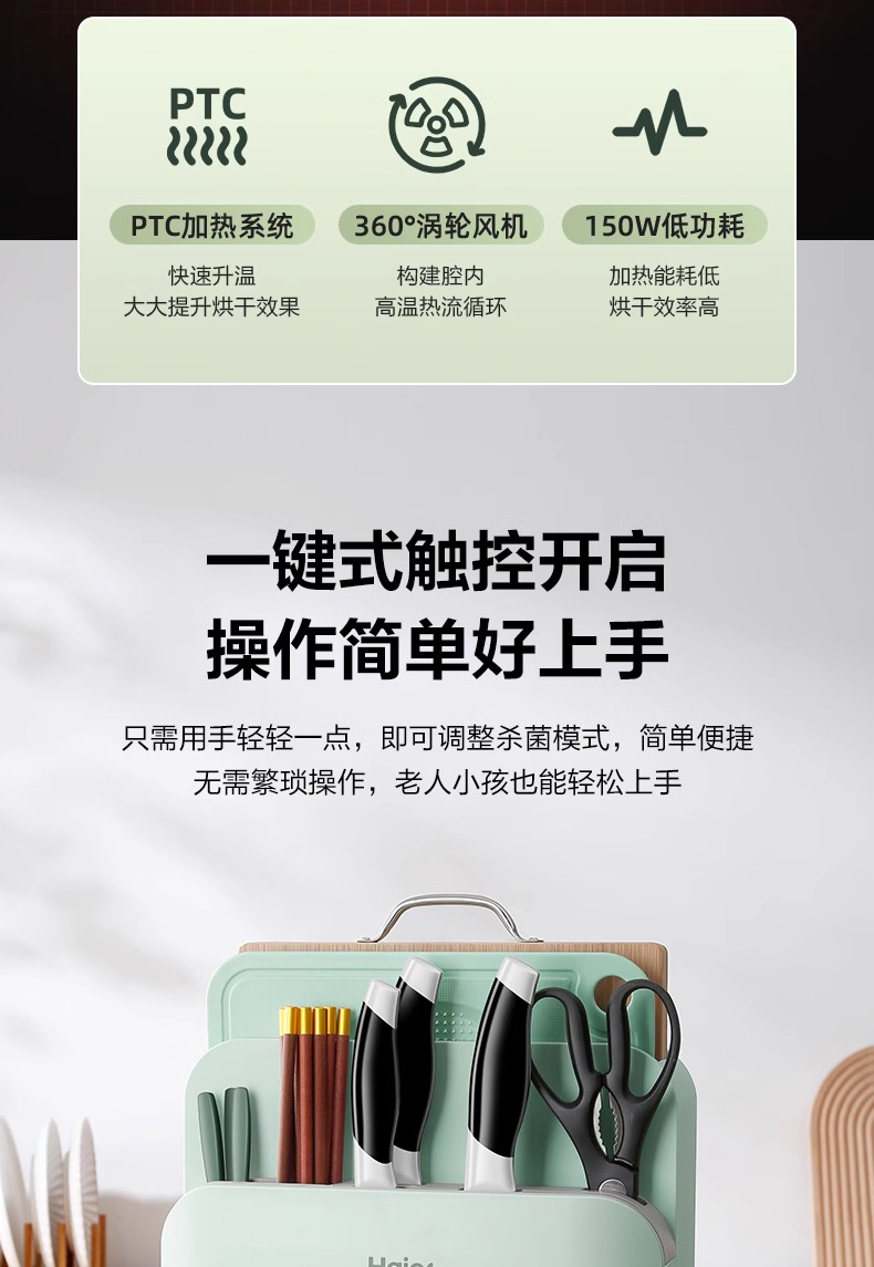 海尔471筷子消毒机筷子简消毒刀架家用带砧板刀具小型烘干一体机
