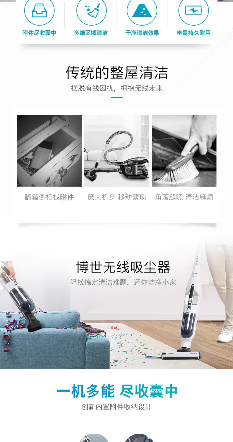 Bosch/博世吸尘器家用大吸力无线立式家车两用多功能手持小型