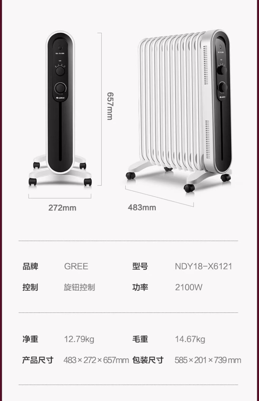 格力油汀取暖器电暖气13片电油丁暖风机烤火炉电暖器家用节能省电